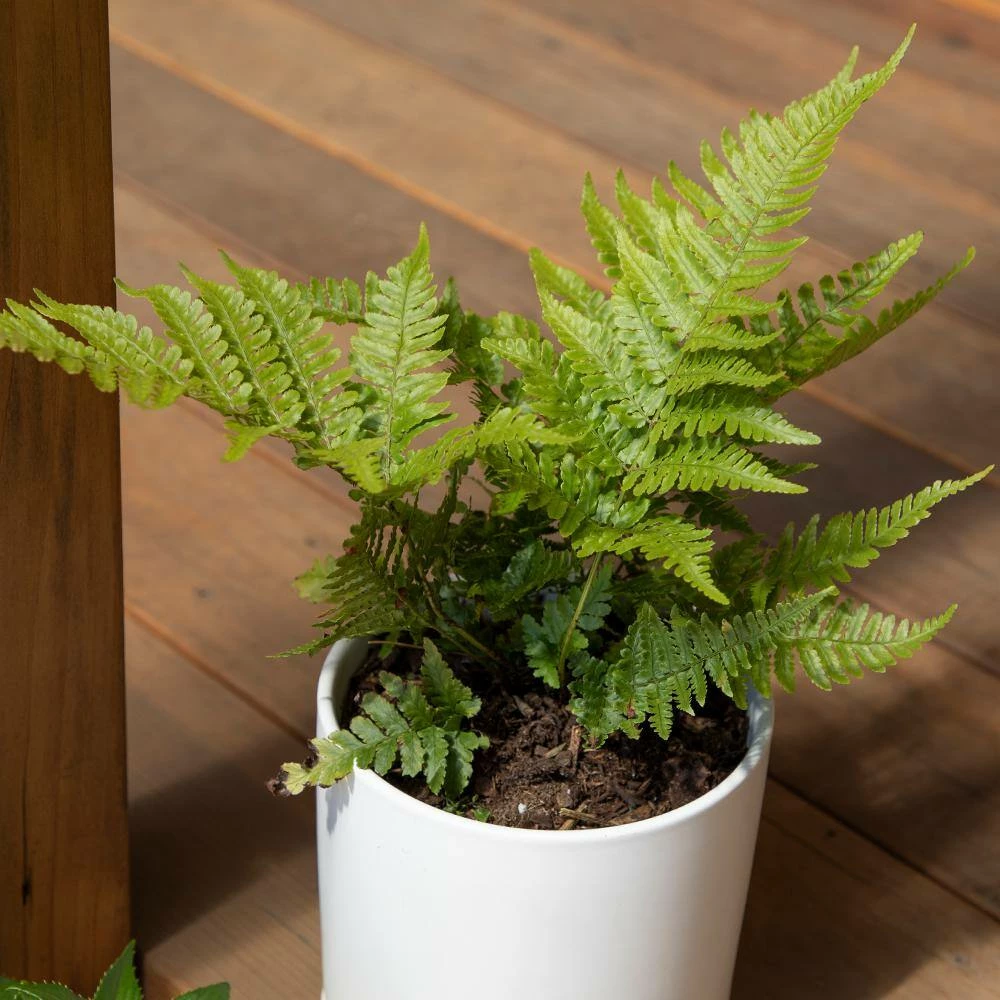 Cool shady spots need ferns. Elegant, tropical and woodsy all at the same time, they are a must for any shade garden. Autumn fern, also known as Japanese shield fern, is a beautiful evergreen or semi-evergreen choice for a shady destination such as a woodland garden or north-side foundation bed. Mix this vase-shaped fern with broad or round-leaf shrubs and rocks and you have a wonderful shade oasis of color and texture contrast. Glossy fronds emerge copper-red in spring, maturing to deep green. The fuzzy red-brown sori (spores) on the underside of the fronds in fall or winter add to the visual drama. with its low-growing style, autumn fern can be deployed for ground-cover purposes, particularly to bring seasonal foliar color to spots in need. The plant spreads slowly over time by rhizomes. Resistant to deer, rabbits and heavy shade. Grows to 18 in. to 30 in. h and wide. Appreciates regular watering and thrives in average to rich, well-drained, evenly moist soil, but is regarded by some as drought tolerant once established. Provide filtered light. Hardy to Zone 7/0°F.