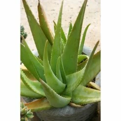 There may be no live succulent plant as storied as Aloe Vera, revered through the ages for its health, beauty, medicinal and skin care uses (even Cleopatra was said to be a fan – yes, that Cleopatra). With its thick, fleshy, lance-shaped leaves, Aloe Vera is a striking, tropical-style, drought-tolerant houseplant or garden plant that adds life to your home and garden decor, this succulent arrives fully rooted in a 1 Gal. container. When the weather warms up, you can place this versatile succulent on your patio or porch, if you dwell in a place where frost is not a concern, Aloe Vera can live and thrive outside year-round. It’s always a treat to see (or hear) hummingbirds make a beeline for the yummy yellow flowers on tall spikes. When not treating hummingbirds, Aloe Vera can be used to soothe minor cuts, scrapes and sunburns. To use, cut outer skin away from a leaf and rub sap onto affected areas. Thanks to its ability to store water, Aloe Vera can go longer between waterings that many other plants, especially traditional houseplants. Along with tolerating drought, this architecturally compelling succulent thrives with little care. While feeding is not essential, you can give your Aloe Vera a boost by feeding in spring and summer with a liquid fertilizer diluted to half strength.