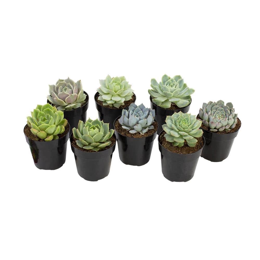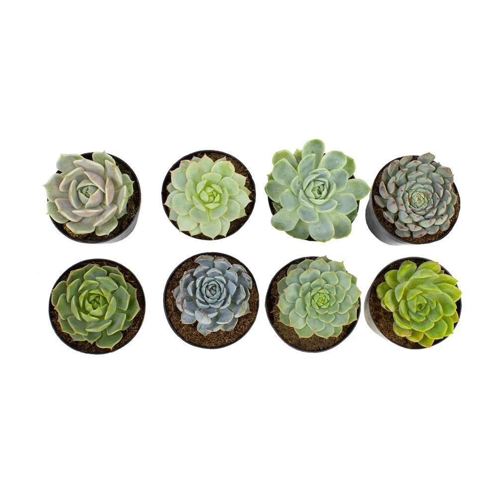- Collection features 8 live echeveria succulents, prized for their colors and rose-shaped forms