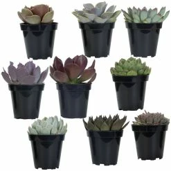Heres a great way to get to know and decorate with the vibrantly distinctive succulents known as echeverias. Enjoy discovering their charming, one-of-a-kind qualities through each of the Echeveria varieties offered in this collection. These 9 plants will allow you to begin creating an attractive space full of year-round dramatic flair, whether in a garden, on a patio or in well-lit areas inside. Echeverias and other succulents are often described as geometric, architectural and sculptural. Succulents are fascinating, low-maintenance, drought-tolerant plants that come in a range of stunning colors, shapes and textures. Decorating with these living treasures offers a wealth of possibilities for your outdoor and indoor spaces. No 2 echeverias are exactly alike, so expect plants to be of various sizes, colors and leaf shapes. Each shipment arrives with care instructions. We recommend promptly removing succulents from their packaging and placing them in a well-lit area such as a patio. Altman Plants is the largest grower of succulents and cacti in the world, with renowned breeders on staff. All succulents are grown in California, which has the perfect climate for optimizing the extraordinary color, durability and quality of our plants.