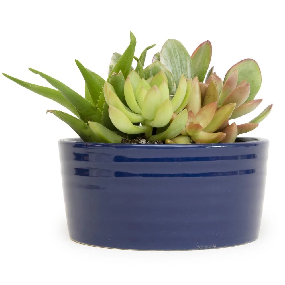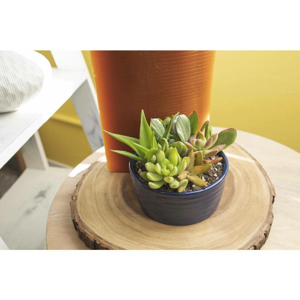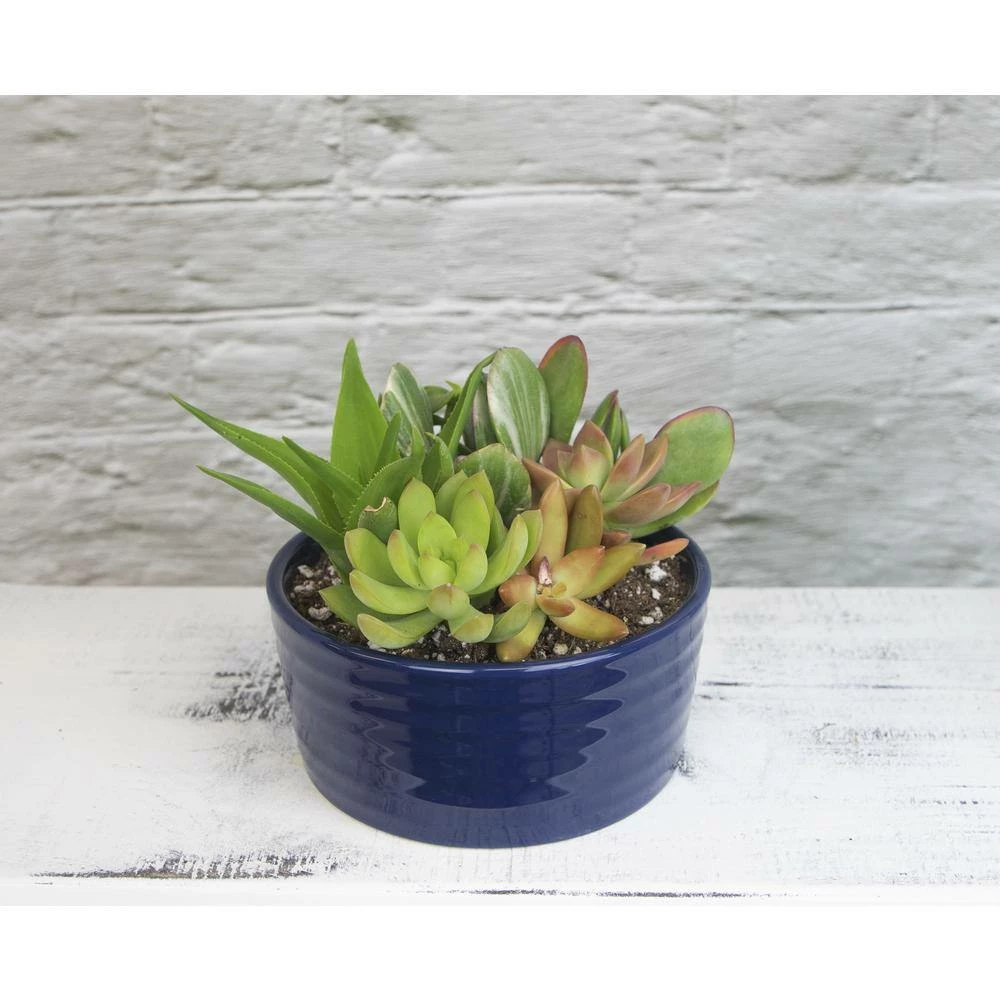 ALTMAN PLANTS 5.5 in. Succulent Garden in Cobalt Blue Ribbed Glazed Planter