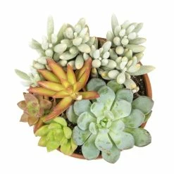 It’s no wonder why succulents are so beloved – these bright, colorful plants are easy to care for and wonderfully easy on the eyes, lending living sparkle to living rooms, bedrooms, kitchens, patios, and more. This eye-catching collection of assorted beauties takes the work out of having to create that perfect arrangement, in a timeless 5 in. clay container. Ideal for beginning plant parents or even seasoned green thumbs looking to enhance their favorite spaces. Live succulents are also great for elevating moods and serving as the objects of mental breathers from the daily grind. Succulents received vary, handpicked and potted based on availability and season. Height and width will vary among the potted plants. Their remarkable range of sizes and forms, along with colors and textures, only adds to succulent plants’ ability to provide dramatic visual appeal. Succulents’ adaptation for storing water allows them to endure drought and they thrive as low-maintenance plants. Blooming period may vary among succulents and may not occur indoors.