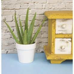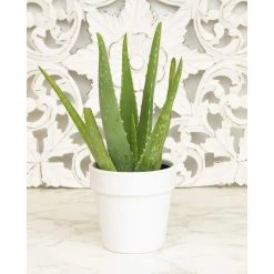 There may be no live succulent plant as storied as Aloe vera, revered through the ages for its medicinal and personal care uses. With its thick, fleshy, lance-shaped leaves, Aloe vera is a striking, tropical-style, drought-tolerant houseplant and garden plant that adds life to your home and garden decor. When the weather warms up, you can place this versatile succulent on your patio or porch. If you dwell in a place where frost is not a concern, Aloe vera can live and thrive outside-year-round. Mass in a border or featured in a mixed garden with other succulents or drought-tolerant plants. It’s always a treat to see (or hear) hummingbirds make a beeline for the yummy yellow flowers on tall spikes. When not treating hummingbirds, Aloe vera can be used to soothe minor cuts, scrapes, and sunburns. To use, cut outer skin away from a leaf and rub sap onto affected areas. Comes with a white glazed clay pot, making decorating easy and suiting a wide range of home decor styles.