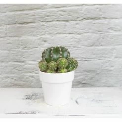 Here’s a simple way to dip your plant parent toes into the world of cacti or to find an affordable, easy, surefire gift for the cactus fan in your life. These lovably prickly, low-maintenance characters are easy to grow and provide countless-hours of eye-candy charm and spirit-lifting positive vibes from anywhere that receives several-hours of bright light a-day. Cacti are responsible for some of the most gorgeous flowers in the plant world, whether as a ring of little blooms or a big radiant stunner that obscures the body of the plant. With this fully rooted live cactus and its white glazed clay drop-in pot, you get to add unique living flair to a bright office, kitchen, or living room, or outside on a porch, patio, or next to the garden. With their ability to store water, cacti are drought-tolerant plants and thrive with little care from their human parents. Like non-spiny succulents, cacti are often described as geometric, architectural, and sculptural. No 2 varieties are exactly alike, which makes decorating and gardening with cacti such a treat. Remember that it is always better to underwater than to overwater. You may receive a cactus plant other than shown, as cacti are chosen based on best available. Think of it as being a surprise in 1 of the best possible ways. Cold hardiness of cactus received may vary from what’s listed in product description. Check label on pot.