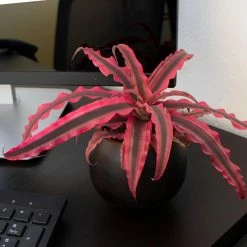 Nicknamed earth stars, Cryptanthus bivittatus, are wonderfully colorful bromeliads that make great houseplants. Growing in a star-shaped rosette of tapering, pointed leaves low to the ground (aka earth), this variety blushes a lovely pink on its foliage. Native to leafy forest floors of Brazil, earth stars appreciate indirect light and medium to high humidity. Diffused or dappled light is your earth star’s best bud. Cryptanthus bivittatus only bloom once, delicate white flowers, but should that happen you can expect to have little pups ready to carry on. To achieve deeper coloring, you can give the plant brighter light, but take care with direct sunlight, as too much can burn or bleach the leaves. Find a nice spot in your kitchen or even bathroom or near a window but away from intense direct rays. Earth stars, with their appreciation of humidity, are striking candidates for a terrarium. They aren’t in a huge rush to graduate to bigger and bigger pots, as they are considered moderate to slow growers. Out in the garden, look for a prime spot under the canopy of a tree where it can enjoy dappled light or high shade. Growth varies, around 3 in. to 6 in. tall and wide. Provide bright, indirect light. Use a well-draining soil mix that retains some moisture. Water when the soil just begins to dry out. Hardy to Zone 10/35°F. Protect from frost.