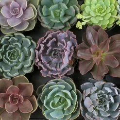 Echeverias, live succulent plants beloved for their bright colors and flower-like forms, shine wherever they’re featured, from bouquets and centerpieces to mixed planters and garden beds. Echeverias are often referred to as hens and chicks because many varieties multiply to form clusters. Along with resembling flowers themselves, echeverias can produce pretty bell-shaped blooms, in hues such as coral pink, gold, or yellow, that hang from flower stalks. Succulents’ adaptation for storing water allows them to endure drought and they thrive with minimal care. This collection of live echeverias was created with beginning plant parents and home and garden decorating in mind. Use them to create colorful dish gardens, for do-it-yourself craft activities, or to adorn upcycled pots, repurposed novelty planters, or table centerpieces. Or for any other crafty, gift-y, or decorative thing you can dream up. Part of what makes succulents so fun is that even 2 of the same variety can look distinct from 1 another because of differences in light and water received. Provide bright light, such as near a sunny window or on a patio. Echeverias will appreciate protection from afternoon sun during warmer months. Prefer well-draining soil with ample airflow. Water thoroughly when the soil is dry. Hardy to Zone 9 or 10, protect from frost.1