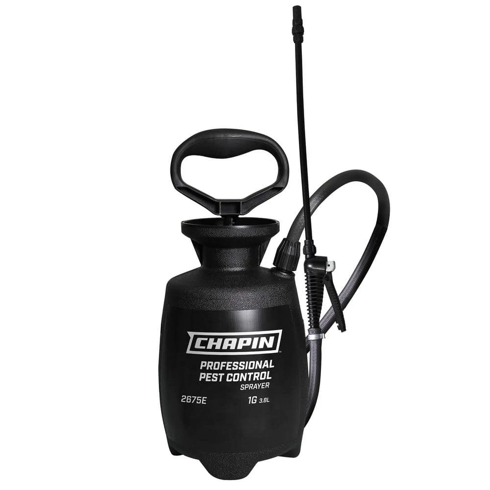 The Chapin 1-gallon pest control poly sprayer is effective for use in cracks and crevices. This sprayer is equipped with a 36 In. nylon reinforced hose that easily disconnects with the safety lock feature. The poly shut-off with lock-on provides continuous spray; the poly adjustable nozzle sprays fine mist to a coarse stream.