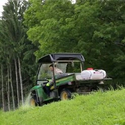 Chapin’s 97300E 15-Gallon 12v Deluxe Dripless EZ Mount ATV Spot Sprayer is configured to mount to your standard ATV, UTV or lawn tractor. Its 15-gallon heavy-duty, translucent, chemical resistant tank has a 5-inch wide tank opening for easy filling and mixing. The pump is a 2.2 gpm, 12-volt diaphragm with quick connect alligator clips. This sprayer has a maximum pressure of 70 psi delivering a 38-foot max vertical spray and a 26-foot max horizontal spray. The double filtration system extends the life of the sprayer and the sprayer has a manifold with pressure gauge. There is also an optional 7-foot and 16-foot coverage spray boom kits available.
