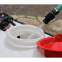 - 15-gallon heavy-duty, translucent, chemical resistant tank with a 5-inch wide tank opening for easy filling and mixing