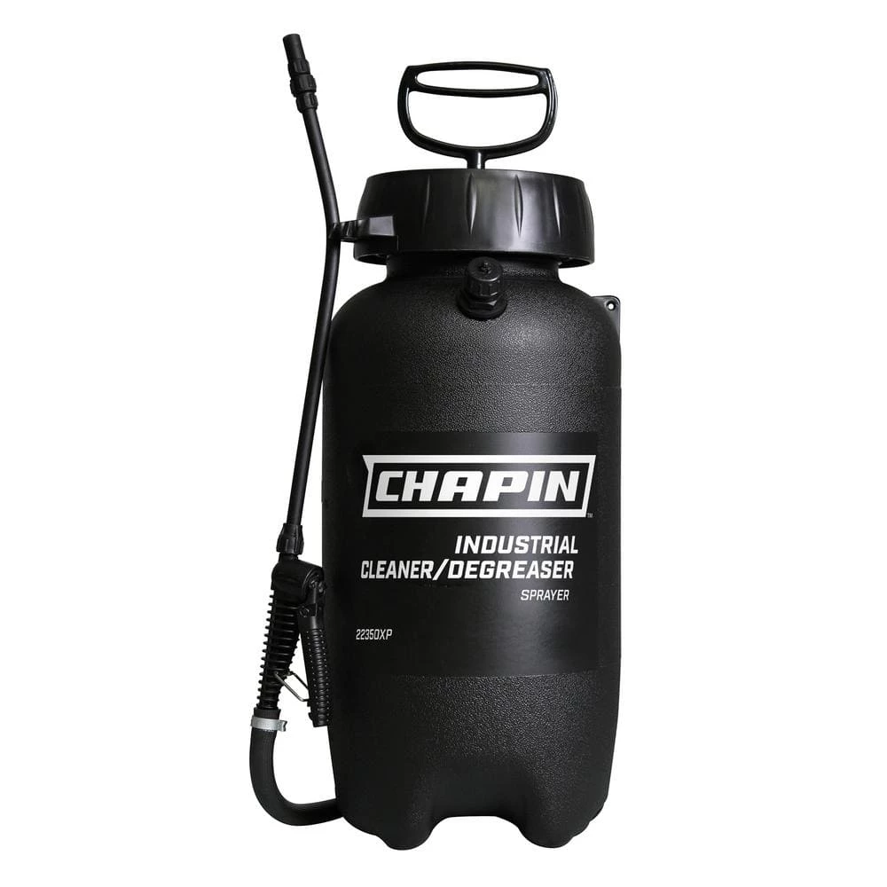 Servicing HVAC units, cleaning engines or working with large scale equipment? Reach for our 22350XP industrial cleaner/degreaser sprayer. Chapin designed this sprayer to handle a variety of cleaners and degreaser for industrial use. With its two-gallon tank you’ll have plenty of solution to cover larger areas. The four-inch mouth opening allows you to easily fill it and clean it after use. The adjustable poly-cone nozzle is standard and gives you the option of a coarse stream or fine mist depending on the task. We built in a pressure relief valve and lock-off mechanism to prevent accidental discharge of chemicals.