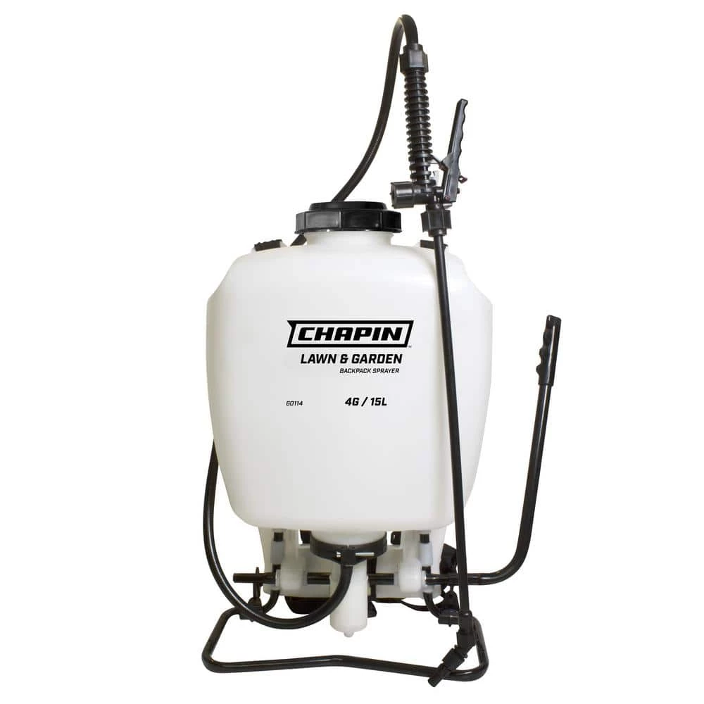 The Chapin home and garden backpack sprayer is ideal for the professional landscaper as well as the homeowner. The 4 Gal. poly tank has a 4 in. opening for easy filling and cleaning. Featuring a 3-stage filtration system to prevent clogging, a translucent poly tank for viewing of fluid level, poly wand, cushion grip poly shut-off, adjustable poly-cone nozzle and padded shoulder straps. Nitrile seals provide compatibility with fertilizers, weed killers and pesticides.