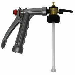 The Professional All Purpose sprayer fits onto any hose end and offers 16 mixing ratios, durable brass mixing head and sprays up to 100 Gal. A built-in anti-siphon feature prevents backflow. 3 simple steps: Fill, Set, Spray. It automatically mixes liquid concentrate with water.