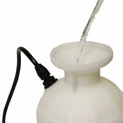 The Chapin SureSpray select 2-gallon poly sprayer features a patented SureSpray anti-clog filter that helps prevent clogging during operation. A unique clean ‘n easy design and funnel top opening eliminates messes during mixing and cleaning. The sprayer comes with a dry hands measure cup for dry hands mixing, an adjustable nozzle, a 28 In. reinforced hose, a brass fan nozzle tip, translucent bottle for ease in checking fluid level, and a curved wand. An included shield attaches to the wand to provide total spray pattern control.