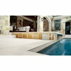 MSIs Caldera Blanca 13 in. x 24 in. Pool Coping features a delicate linear pattern and blend of elegant white hues for a timeless look you’re sure to love. This pleasingly neutral pool coping coordinates with Other 24 in. x 24 in. pavers and comes in a matte finish that only adds to its elegance. Caldera Blanca pool copings lend the perfect finishing touch to any number of Arterra Premium Paver projects, including pool edges, dividing walls and steps. Durable, easy to clean and low maintenance, this is modern elegance done right.