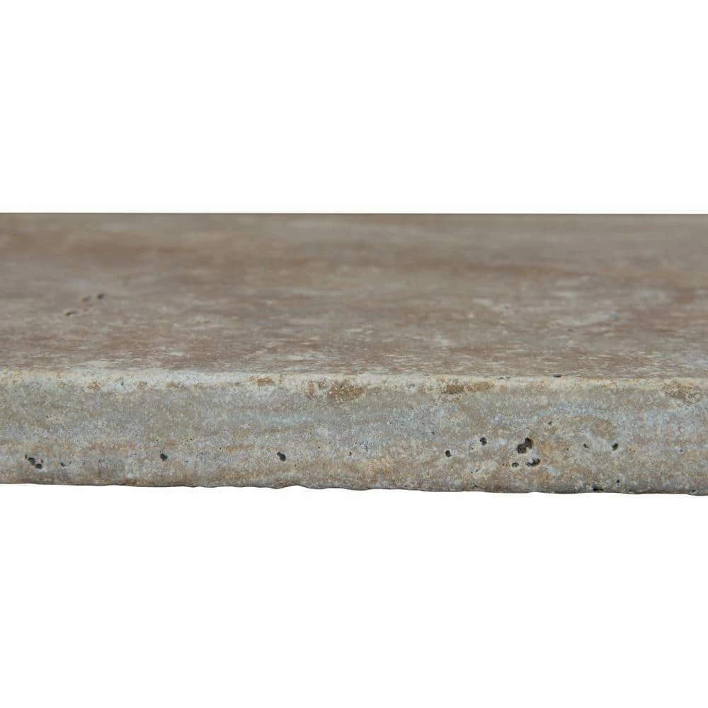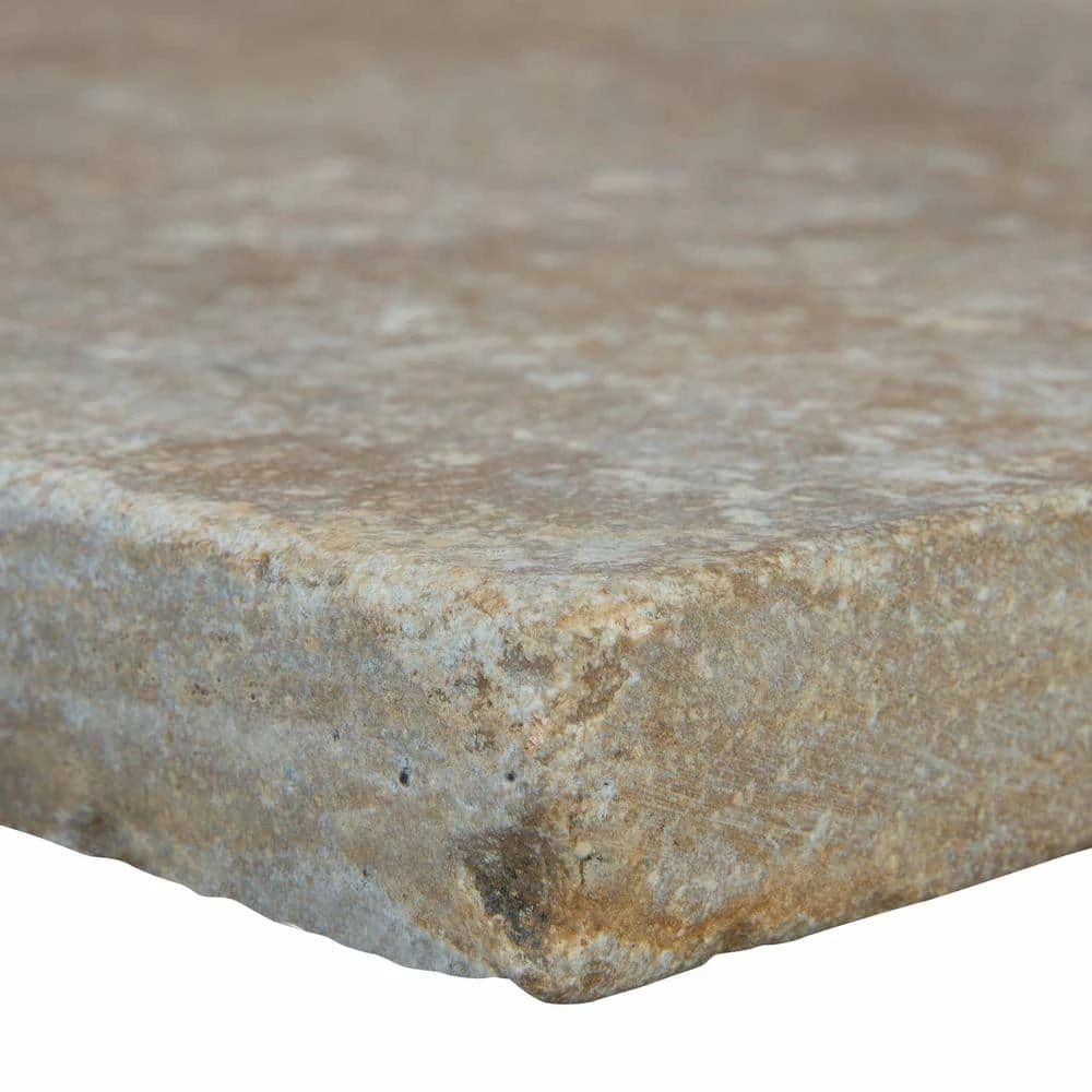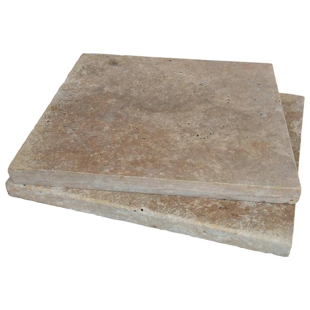 MS International Riviera 16 in. x 16 in. Tumbled Travertine Pavers are natural stone that add timeless Tuscan beauty into your patio or walkway. Ideal for indoor or outdoor applications, these natural stone pavers are durable and have various shades of gold and yellow that create a subtle visual interest. With a tumbled finish, the tile provides a rustic aged look that blends with the surroundings to create a perfect setting. NOTE: Inspect all tiles before installation. Natural stone products inherently lack uniformity and are subject to variation in color, shade, finish, etc. It is recommended to blend tiles from different boxes when installing. Natural stones may be characterized by dry seams and pits that are often filled. The filling can work its way out and it may be necessary to refill these voids as part of a normal maintenance procedure. All natural stone products should be sealed with a penetrating sealer. After installation, vendor disclaims any liabilities.
