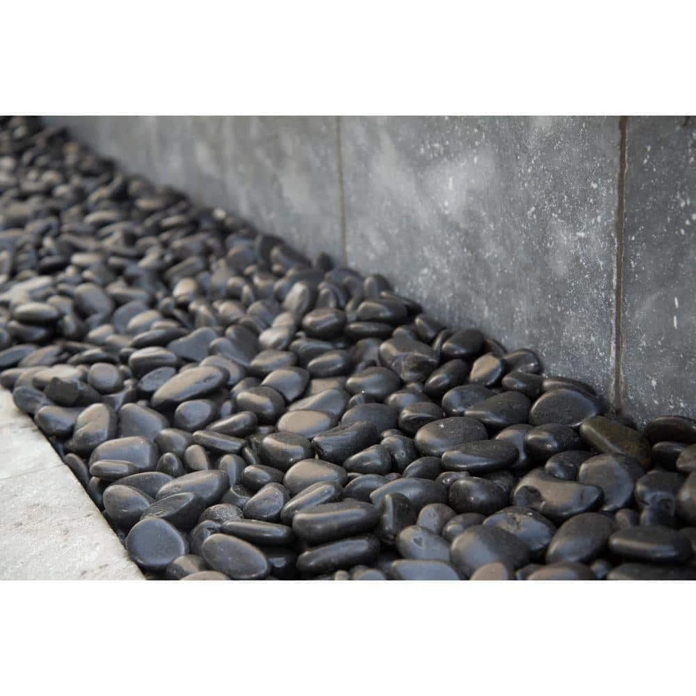 MS International Small Black Polished Pebbles 40 lbs. bag contains handsome black colored quartz pebbles that lend a fine decorative touch to various installs. Ideal for use as an addition to your landscape, these pebbles protect the soil from temperature extremes, restrain the growth of weeds and also lend a natural look to your garden. The pebbles are ideal for use near areas that are prone to washouts like under downspouts and may be used at front entrances to add a professional look.