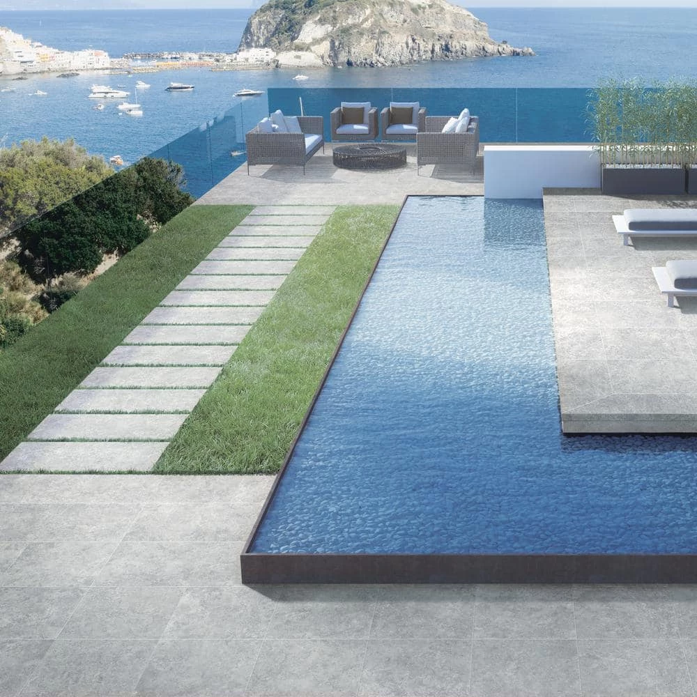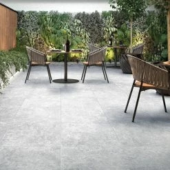 Lunar Silver Pavers feature cool whites and light greys for a stylish, contemporary appearance. These pavers complement any architectural style and are perfect for indoor and outdoor use. With a strong resemblance to travertine, these 24 in. x 24 in. x 2 cm porcelain pavers can be used as indoor flooring or outside for a walkway or patio. Frost resistant, durable, and easy to maintain, the Areterra Silver Trav Pavers are well-suited for commercial and residential applications.
