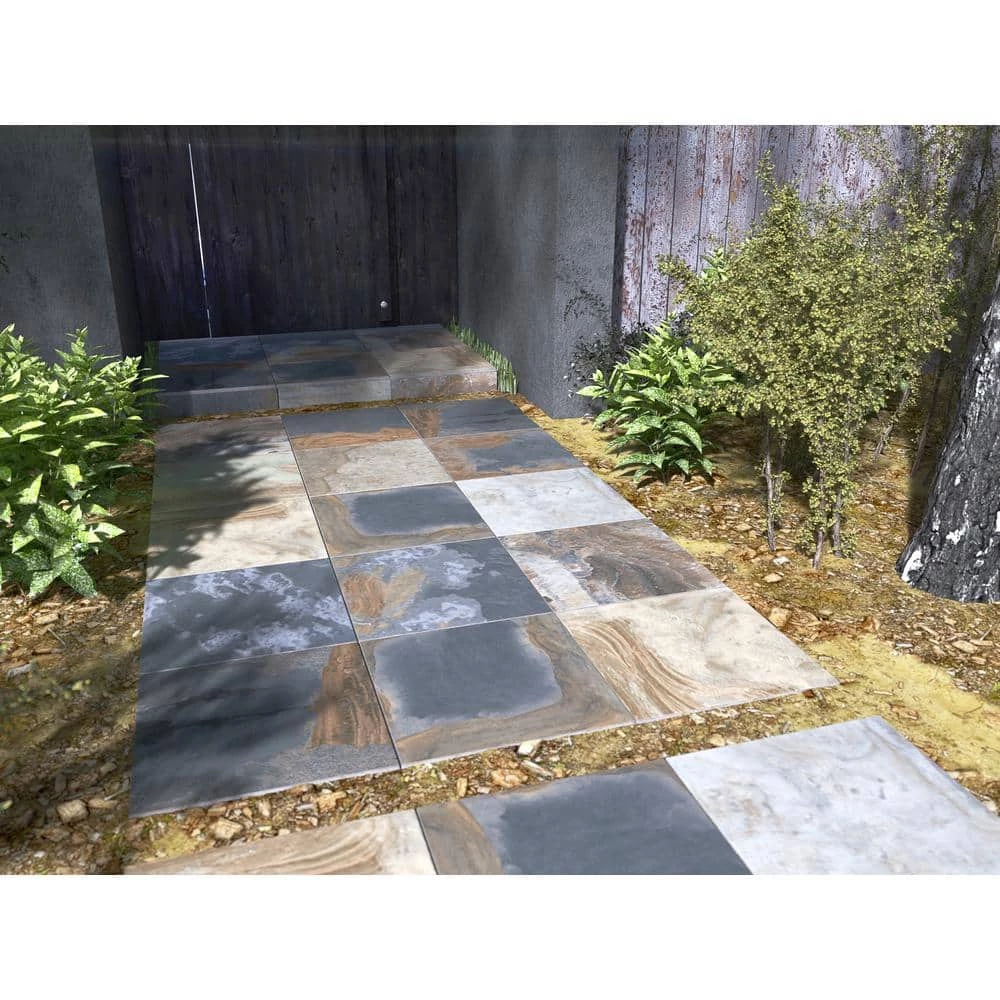 MSI’s Mystique Multi 24 in. x 24 in. x 0.79 in. Porcelain Paver sets your residential or light commercial project apart from the rest. Featuring an eye-catching mix of browns, grays, beiges and rust, this natural stone look paver creates a warm, welcoming ambiance that’s always in style. It can also withstand freeze thaw cycles, making it suitable for most residential and light commercial outdoor flooring applications. Additionally, it’s slip resistant and it’s color and design won’t fade overtime. Easy to install, stain resistant and low-maintenance, this large format porcelain paver is a top choice for those who want designer style without sacrificing practicality. Sand set it or place it directly on grass for a casual look or install with mortar over a concrete bed to achieve a more formal feel. Recommended for both interior and exterior design projects including floors, paths, driveways, pool areas and patios, this multitalented porcelain paver is a trend-setting design solution.