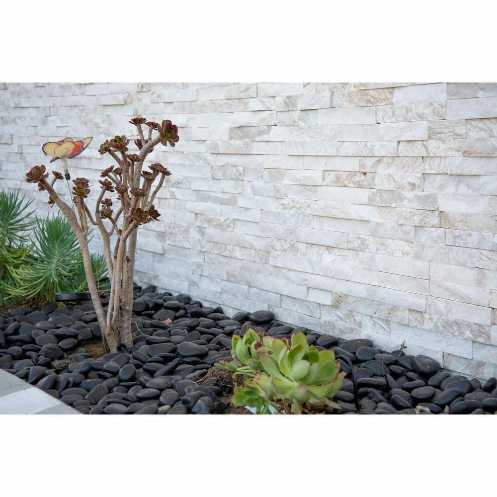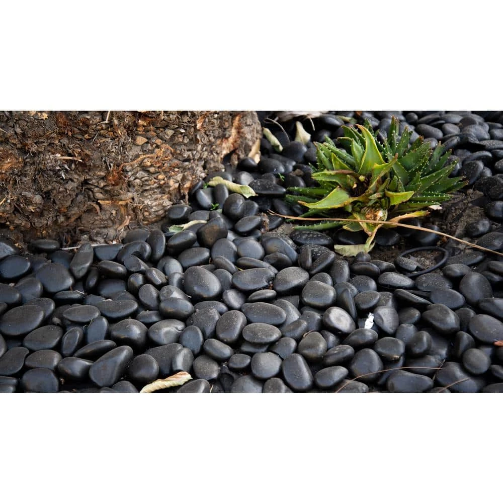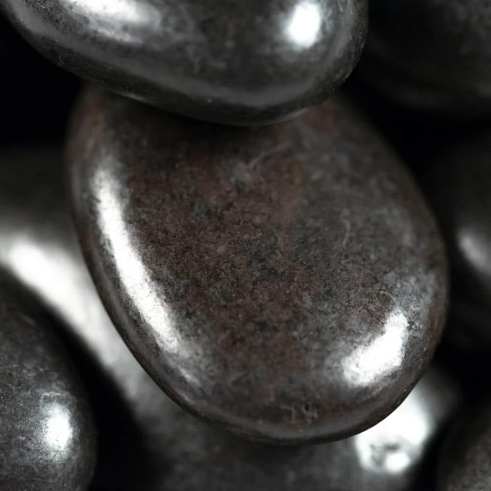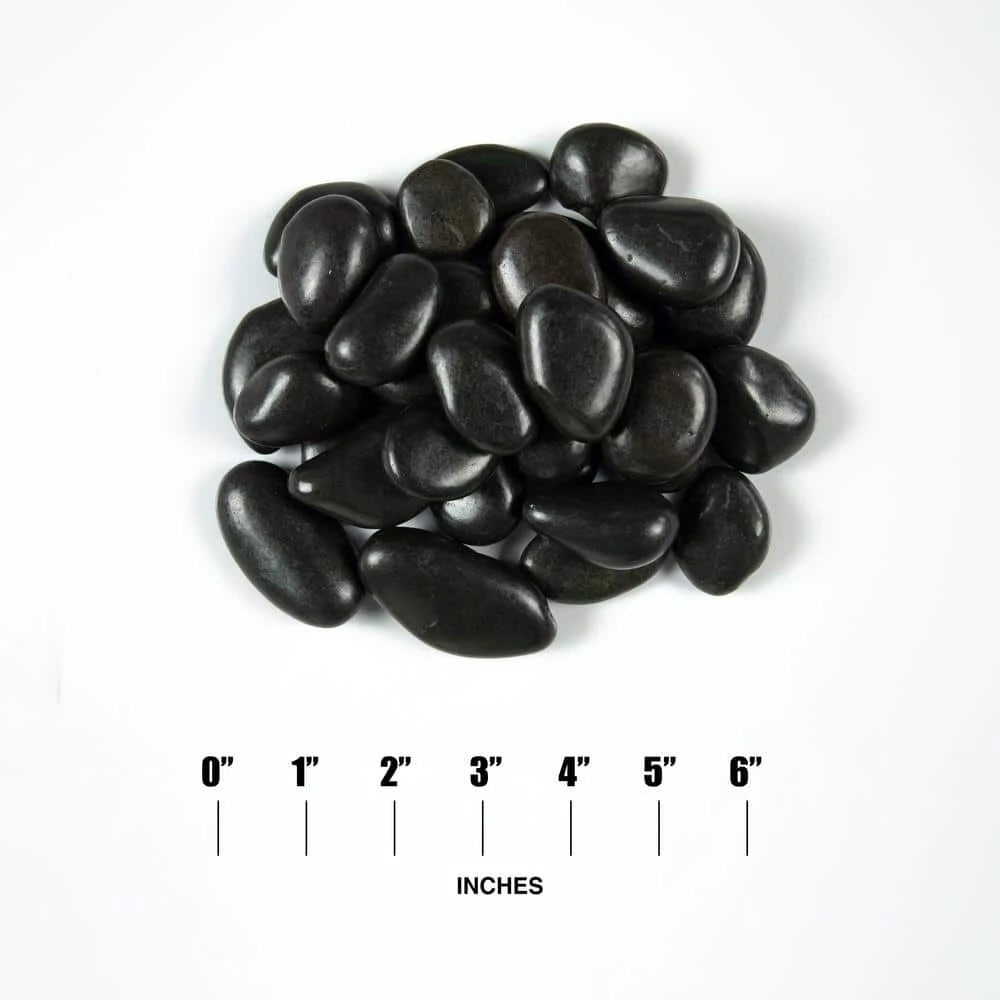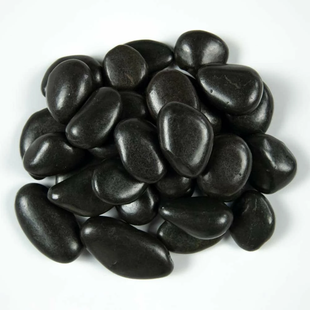 MSI’s Quartzite Black Super Polished Pebbles 20 lbs. bag contains elegant Black marble pebbles that lend a fine decorative touch to various installs. Ideal for use as an addition to your landscape, these pebbles protect the soil from temperature extremes, restrain the growth of weeds and also lend a natural look to your garden. The pebbles are ideal for use near areas that are prone to washouts like under downspouts and may be used at front entrances to add a professional look.