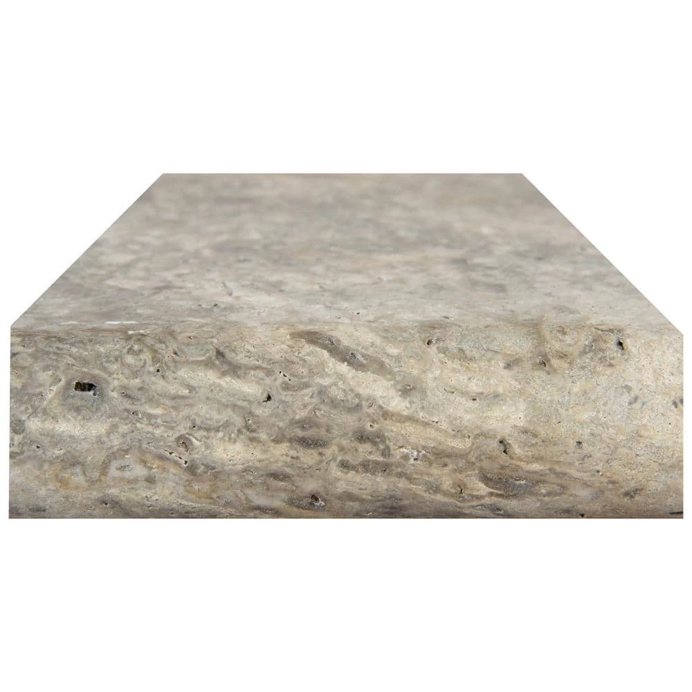 MS International Silver 12 in. x 24 in. Honed-unfilled Travertine Pool Copings add a timeless Tuscan beauty for your surroundings, outdoors or indoors. Ideal for poolside’s or step treads, these are durable and have various shades of silver and gray that create a subtle visual interest. With a bullnose on one long side, the tile provides various install options that blend seamlessly to create a perfect setting. NOTE: Inspect all tiles before installation. Natural stone products inherently lack uniformity and are subject to variation in color, shade, finish, etc. It is recommended to blend tiles from different boxes when installing. Natural stones may be characterized by dry seams and pits that are often filled. The filling can work its way out and it may be necessary to refill these voids as part of a normal maintenance procedure. All natural stone products should be sealed with a penetrating sealer. After installation, vendor disclaims any liabilities.