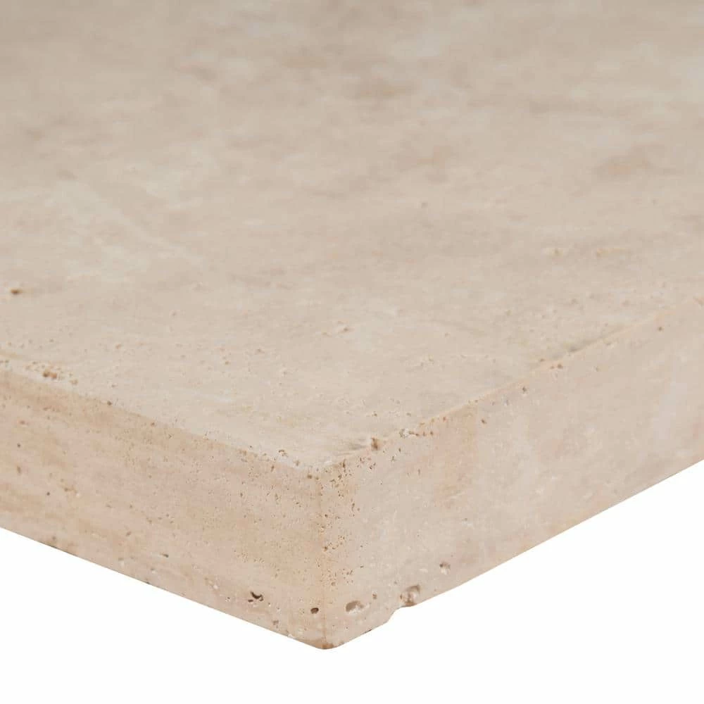 MS International Tuscany Beige 16 in. x 24 in. Brushed Travertine Pool Copings add a timeless Tuscan beauty for your surroundings, outdoors or indoors. Ideal for poolside’s or step treads, these are durable and have various shades of beige that create a subtle visual interest. With a bullnose on 1 long side, the tile provides various install options that blend seamlessly to create a perfect setting. Note: Inspect all tiles before installation. Natural stone products inherently lack uniformity and are subject to variation in color, shade, finish, etc. It is recommended to blend tiles from different boxes when installing. Natural stones may be characterized by dry seams and pits that are often filled. The filling can work its way out and it may be necessary to refill these voids as part of a normal maintenance procedure. All natural stone products should be sealed with a penetrating sealer. After installation, vendor disclaims any liabilities.