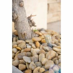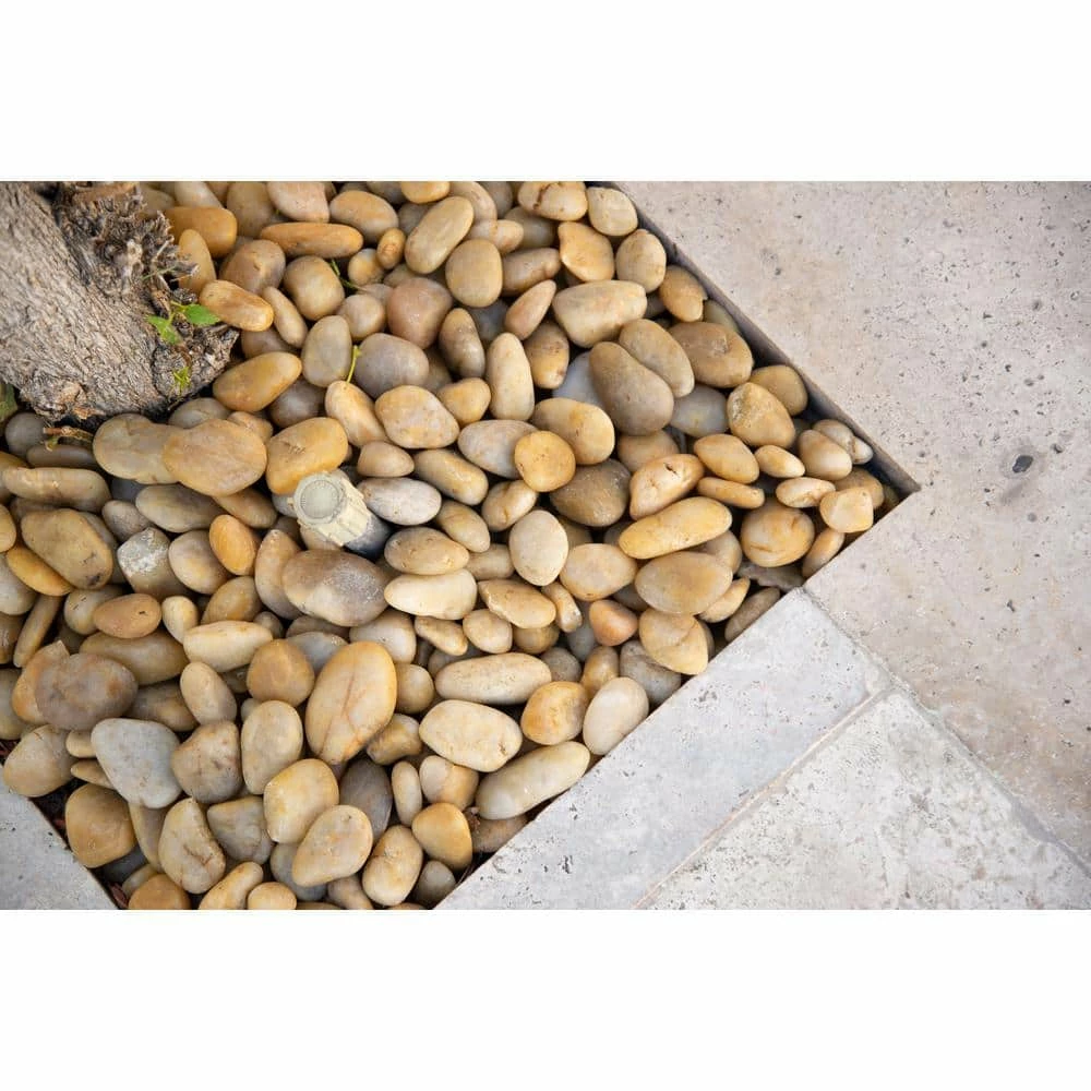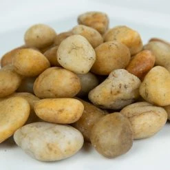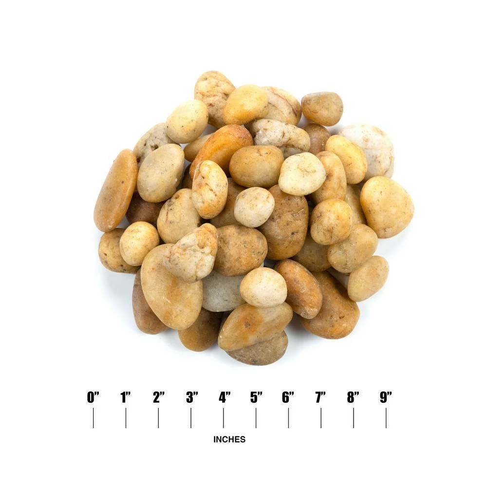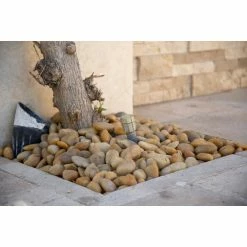 MS International Small Yellow Polished Pebbles 40 lbs. bag contains warm yellow marble pebbles that lend a fine decorative touch to various installs. Ideal for use as an addition to your landscape, these pebbles protect the soil from temperature extremes, restrain the growth of weeds and also lend a natural look to your garden. The pebbles are ideal for use near areas that are prone to washouts like under downspouts and may be used at front entrances to add a professional look.