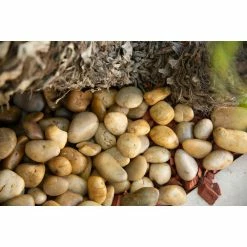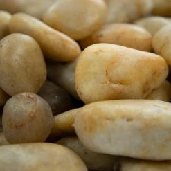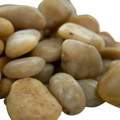 MS International Large Yellow Polished Pebbles 40 lbs. bag contains warm yellow marble pebbles that lend a fine decorative touch to various installs. Ideal for use as an addition to your landscape, these pebbles protect the soil from temperature extremes, restrain the growth of weeds and also lend a natural look to your garden. The pebbles are ideal for use near areas that are prone to washouts like under downspouts and may be used at front entrances to add a professional look.